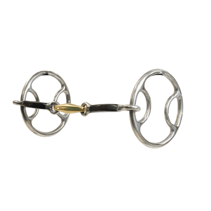 The unique three piece square bar mouthpiece (5 1/4”) ensures even pressure distribution in the horse’s mouth. This makes the bit ideal for horses that require a bit more definition in the aids.