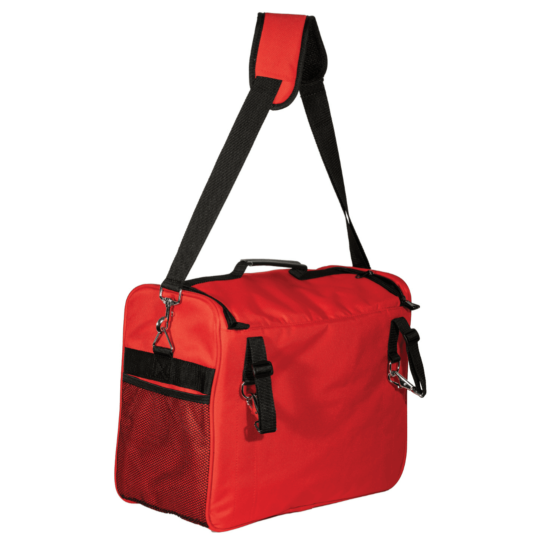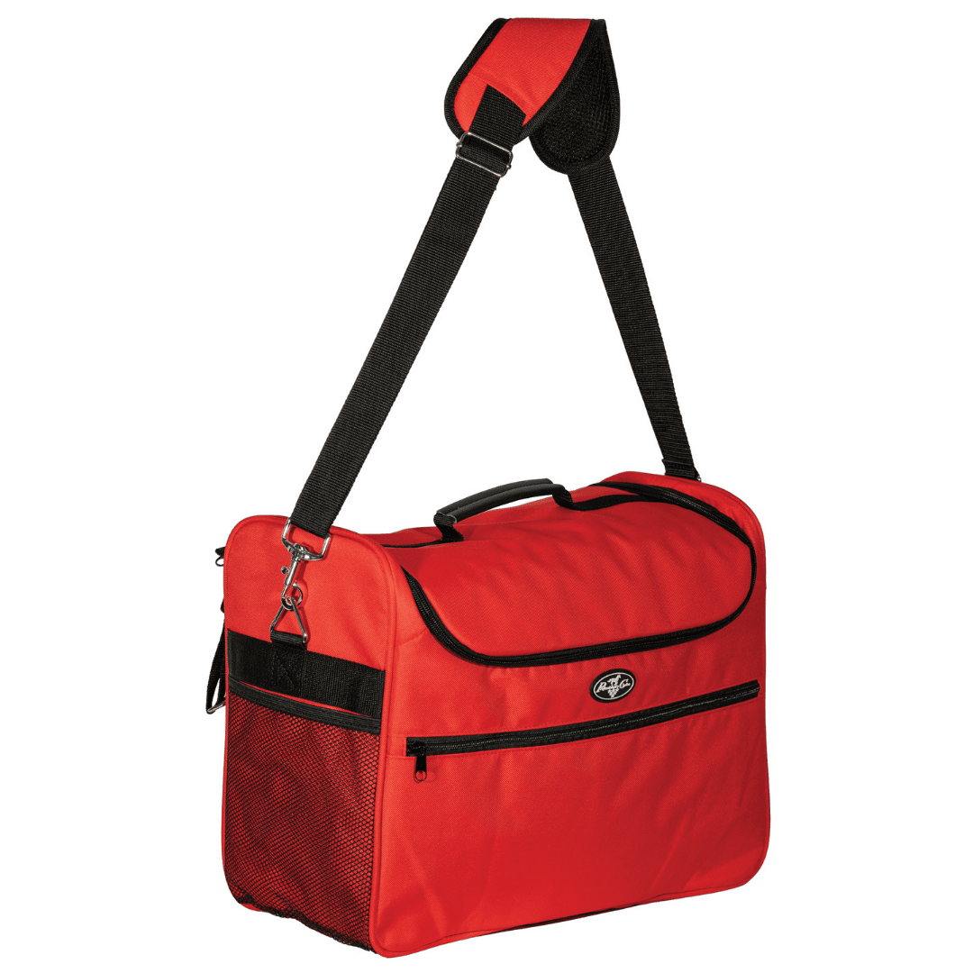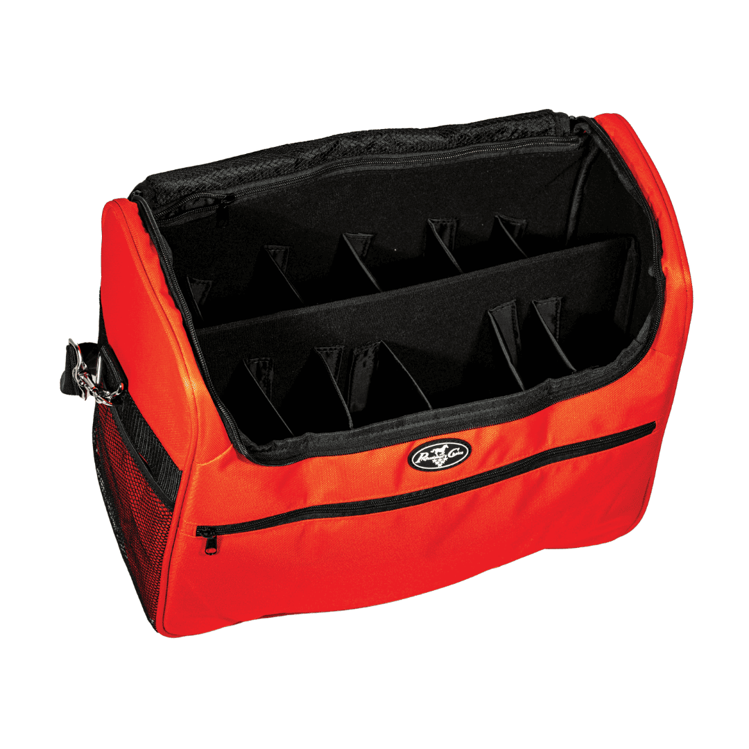 Practical and flexible tack organizer with removable dividers, mesh pockets, and a padded shoulder strap for grooming gear and essentials.
