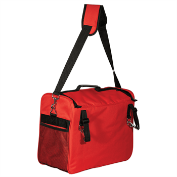 For added comfort, the model is fitted with a removable, padded shoulder strap, making the bag comfortable to carry even when full. In addition, it features a handle on the top, so you can quickly take it with you from the tack room to the stable aisle, trailer, or showgrounds. On the back, there are two straps with clips, allowing the organizer to be easily hung over a fence or stall door. This is a great advantage in busy situations where you want easy access to the contents without placing the bag on the ground.