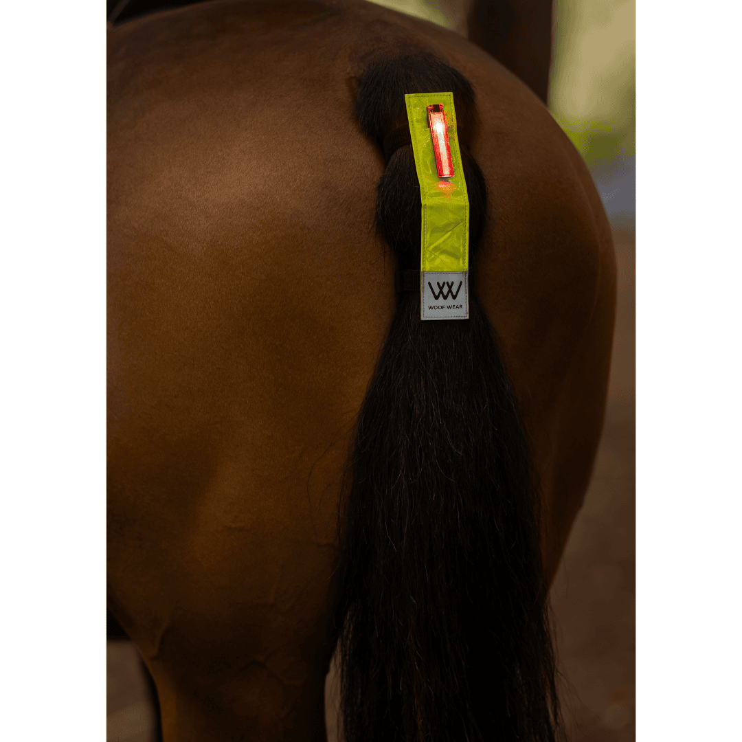 Hi-vis LED tail light for horses improves rear visibility with reflective + LED, secure attachment and long battery life—ideal for safer road riding.