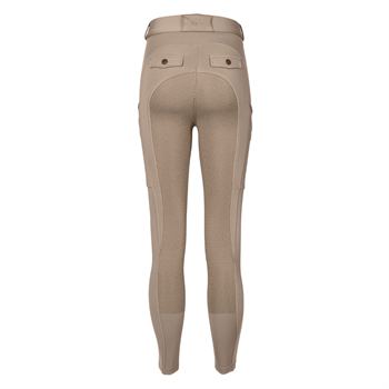 Hybrid riding breeches in Stone with breeches polish and tights comfort: zipped fly, belt loops, faux back pockets, high waistband and Micro-Grip full seat. 4-way stretch.