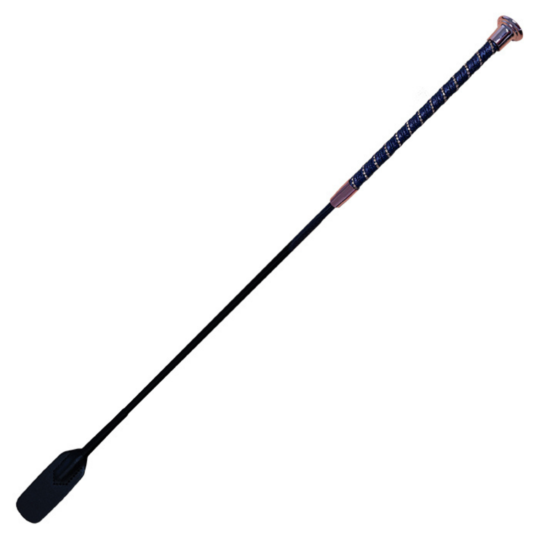 60cm Twisted Riding Whip with shimmering crystal‑twisted grip and elegant finish. Well‑balanced, comfortable and stylish in Black, Navy and Cappuccino.