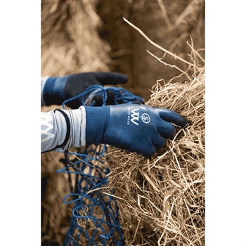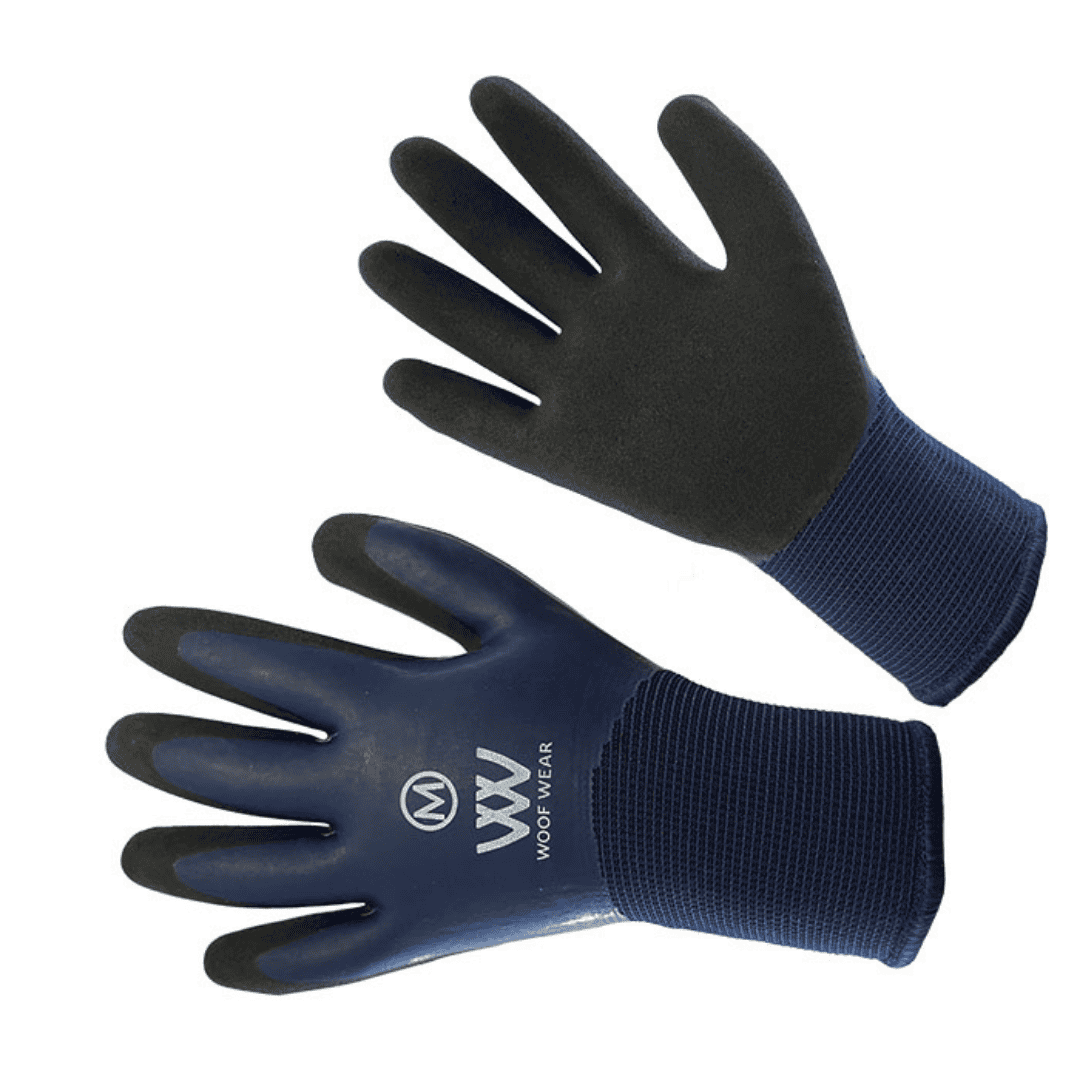 Woof Wear Winter Yard Gloves – Navy are your new winter go-to for all stable and yard work in cold, damp weather. The glove combines a waterproof outer with an insulating lining to keep hands dry and warm, while a high-grip palm ensures a secure hold on everything from wheelbarrow handles to wet buckets. The materials are designed to move with your hand so you can fasten halters, open/close carabiners, and handle small screws without losing feel—even with cold fingers.